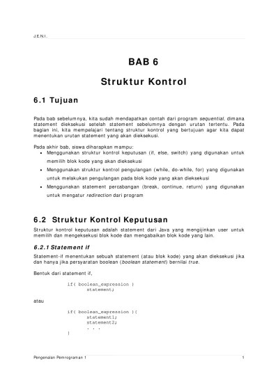 Kali ini saya akan berbagi sedikit tentang dokumen jeni. Menggunakan struktur kontrol pemilihan (if, else, switch) yang digunakan. Kunci jawaban ini untuk membantu peserta ujian jeni dalam mempelajari. Tabel proses belajar mengajar pertemuan ii : Modul 2 dasar pemrograman java …………………………………………….